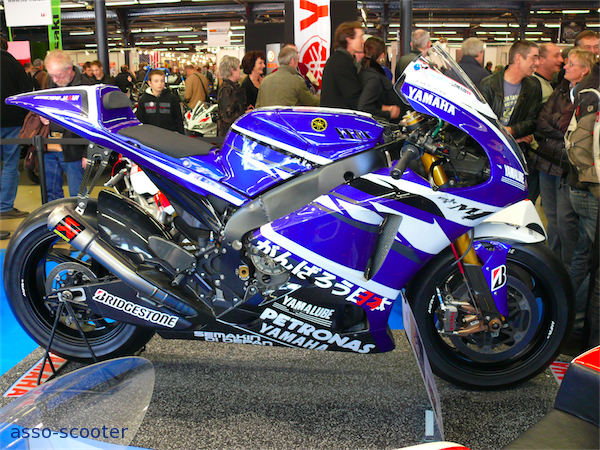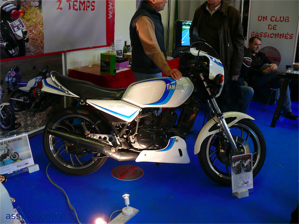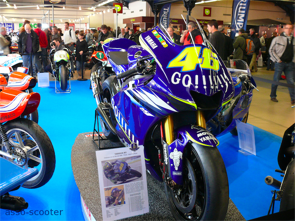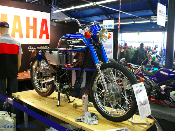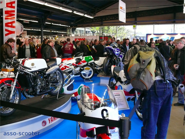 Le thème de cette édition 2011 était les 50 ans de la marque Yamaha en compétition et la marque aux diapasons présentait ses motos de compétition. 50 ans d’histoire, ça en fait des histoires que ces motos pourraient nous raconter. Elles se sont contentées d’être là, astiquées et lustrées, pour notre plus grand plaisir.
