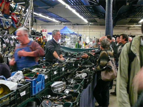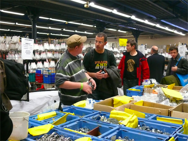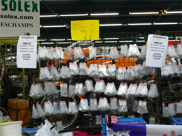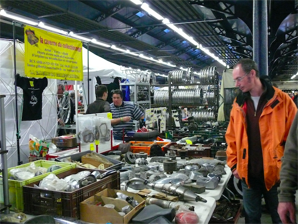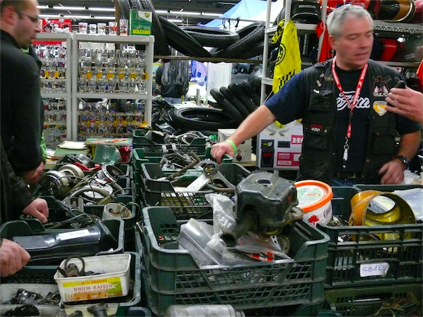 Du côté des pièces, ça discute encore plus que du côté des deux roues. On finit par ne plus savoir qui est le plus passionné entre le vendeur et l’acheteur.