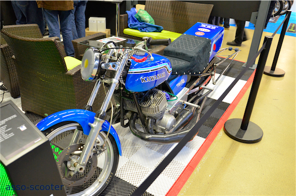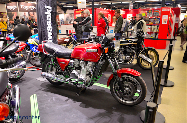 Cette année, Kawasaki tenait la vedette et c’était l’occasion de découvrir, ou de re-découvrir, des modèles mythiques. La rétrospective couvrait la période de 1968 à 1984 et le public se pressait pour voir ou revoir des véhicules devenus légendaires.