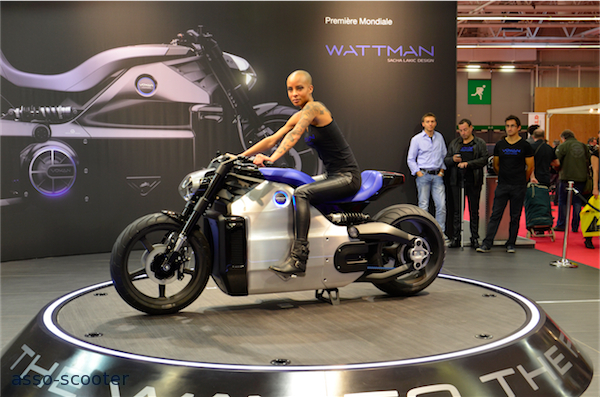 Au Salon Moto Paris 2013, Voxan Motors présente la Wattman, une moto électrique, certainement la plus puissante et la plus rapide au monde.