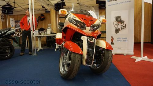 Cette année au salon, vous pourrez admirer le travail réalisé sur une Goldwing sur laquelle Handicaps Motards Solidarité a greffé une troisième roue. L’ensemble ne fait pas dans la légèreté mais le motard handicapé des membres inférieurs peut conduire à nouveau une moto, ressentir les sensations de pencher.
