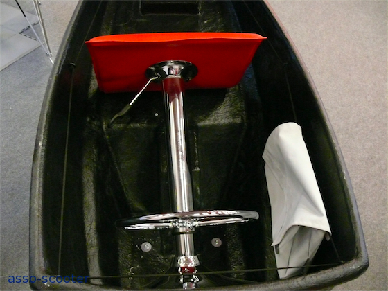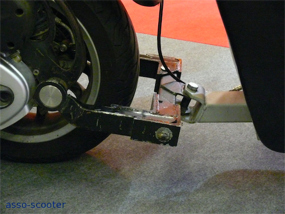 Ce système est composé de deux parties. L’une est montée à demeure sur le scooter mais est démontable à tout moment. L’autre est la remorque proprement dite. Celle-ci se solidarise au scooter par un axe et une goupille.