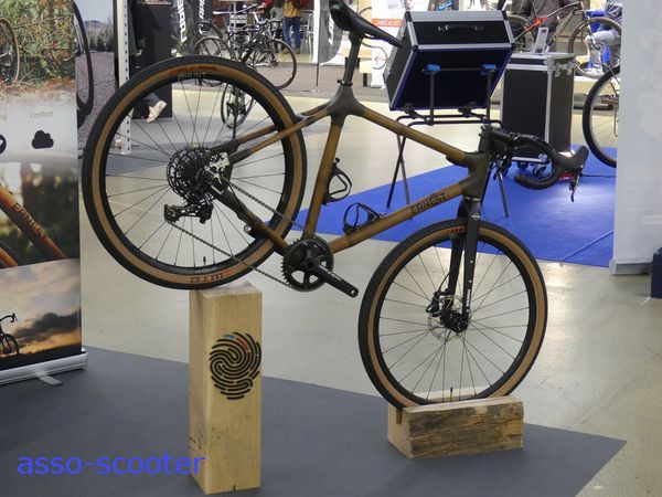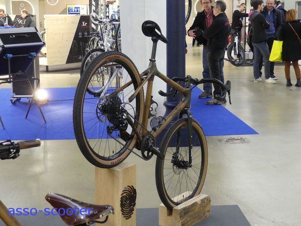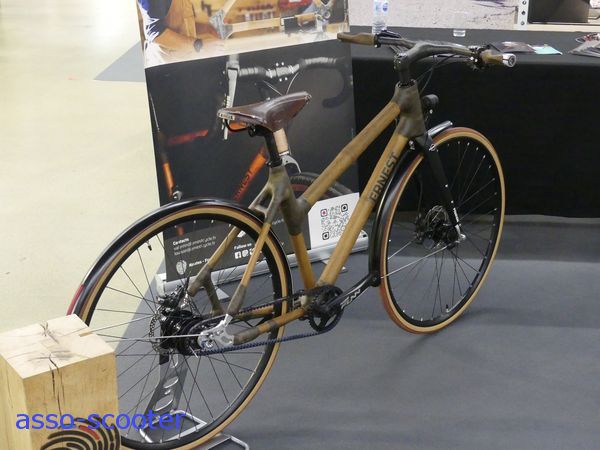 En déambulant dans les allées, vous constaterez que les vélos traditionnels deviennent de plus en plus techniques et, il faut le dire, beaux. Si le principe n’a pas évolué depuis le début, un cadre, un guidon, deux roues, la technologie est venue enrichir ce principe. Les matériaux eux-mêmes ont changé et c’est maintenant une palette de matériaux qui s’offre aux constructeurs. Chez Ernest, près de Nantes, la cadre est en bambou et sur mesure.