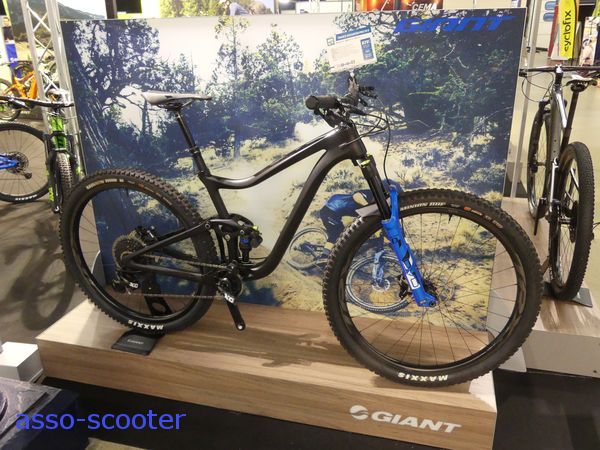 Vu sur le stand Giant, le Trance Advanced Pro 29 0. Comme son nom l’indique, il s’adresse à une clientèle spécifique qui est prête à débourser la coquette somme de 7.999€.