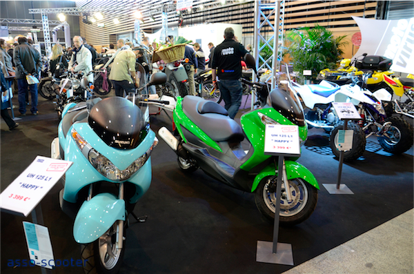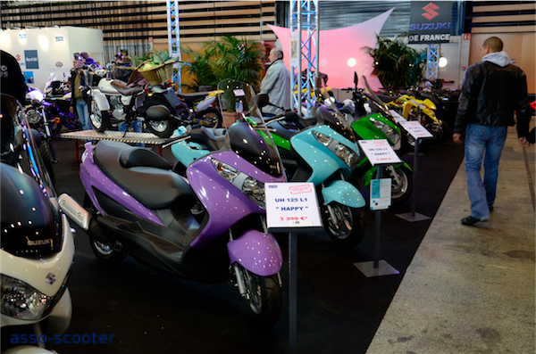 La nouvelle marque trois roues était présente au travers de son revendeur « Virus moto ». Ce dernier distribue également les scooters Suzuki et les Burgman 125cc étaient parés de superbes couleurs. Dommage qu’on n’en voit pas plus dans les rues.