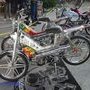 Sur le salon, Didier présente quelques-unes de ces réalisations. Elles sont toutes sur base de 50cc. Didier a une prédilection pour les 103 Peugeot mais cette année, le puriste de la 103 a décidé de mélanger les genres. Il y a des Mobylettes, une Ciao et tout un tas d’autres réalisations. Ce qui caractérise ses mobs, c’est le sens du détail. Chacune est travaillée avec une précision d’orfèvre. Le moindre boulon, la moindre valve fait partie intégrante du travail réalisé.