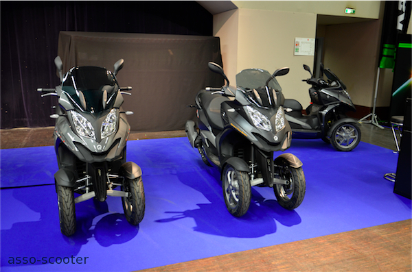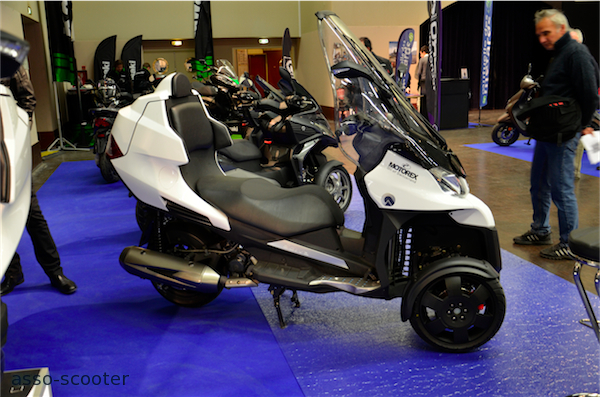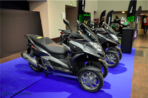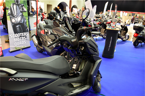 Beaucoup de scooters sur le stand avec des trois roues en vedette et des prix salon ! Par exemple, le nouveau Fuoco LT est ainsi à 7.699€ contre les 8.699€. Le Mp3 500 LT Sport est quant à lui à 8.499€ au lieu des 9.199€ du tarif. Avec des frais d’immatriculation de 419€ et de gravage de 59€, il y a des affaires à faire.