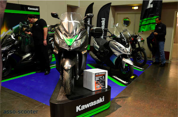 Arrivée dans le monde du scooter et en fanfare pour Kawasaki cette année. Le J300 est en effet le premier scooter de la marque. Vous ne pouvez pas manquer le stand pour deux raisons.