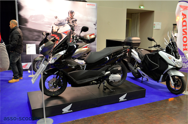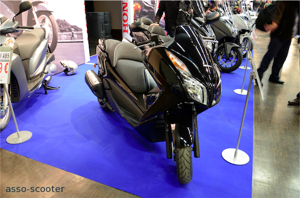 Chez Honda, la gamme est large et les nouveautés sont présentes sur le stand ; Le nouvel Integra 750 est là, ainsi que le Forza en 300cc.