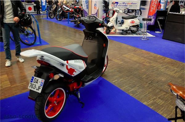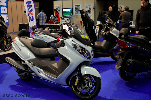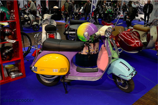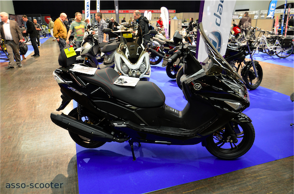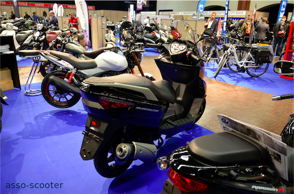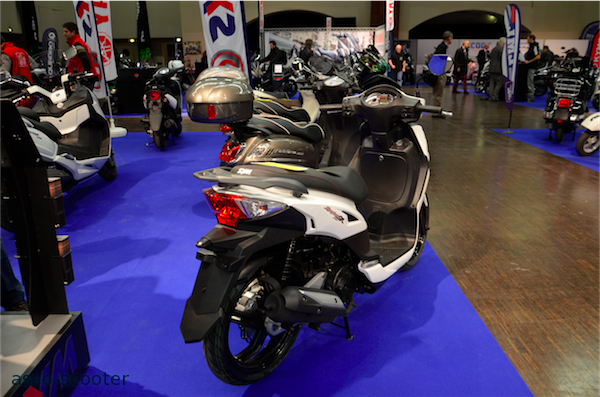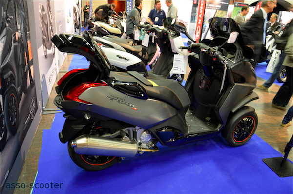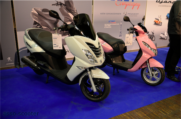 Les scooters Peugeot sont bien sur présent avec la marque en direct. Metropoliss, Citystar, Satelis, les grands classiques de la marque sont là. Un Kisbee rose du meilleur effet est également exposé.