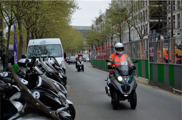 Presque la foule des grands jours dès ce vendredi matin pour effectuer des essais scooters. Dehors, c’est un véritable ballet de gilet fluo orange. Les scooters s’arrêtent, sont rangés tandis que déjà d’autres repartent. La rue, devenue étroite pour cause de travaux, ralentit à peine le rythme des arrivants et des partants. Bus et autos prennent leur mal en patience. Et cet intérêt pour le scooter fait plaisir à voir.