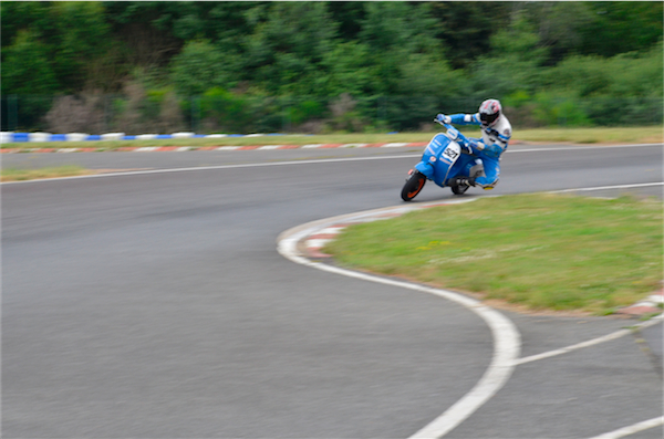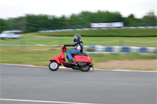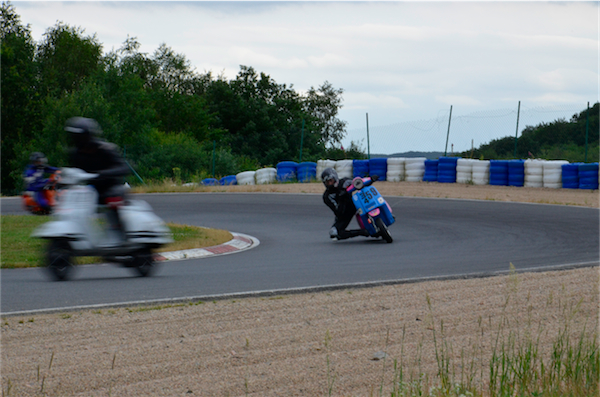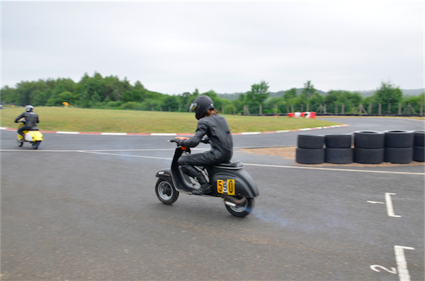 Nous sommes loin des scooters modernes et aseptisés. Ici, les scooters parlent, fument, hurlent, sentent l’huile. Un panache de fumée suit leur sillage pour certains. Les vitesses passent plus ou moins vite, les pneus crissent, les moteurs s’emballent, les chronos tombent et on se laisse vite prendre par l’ambiance générale.