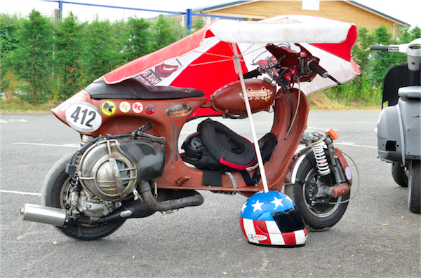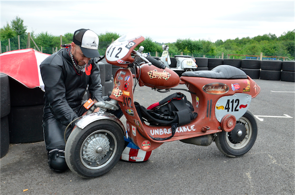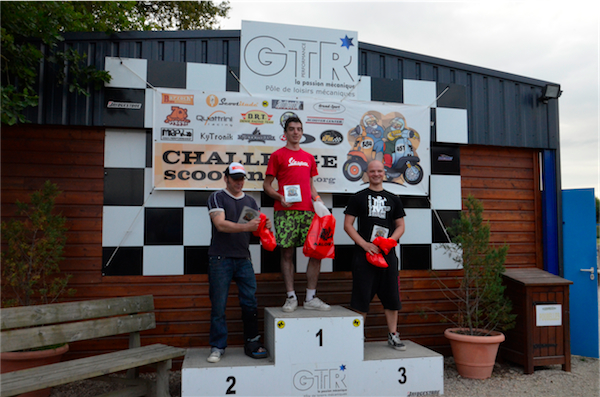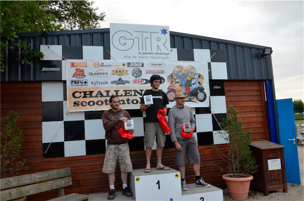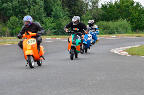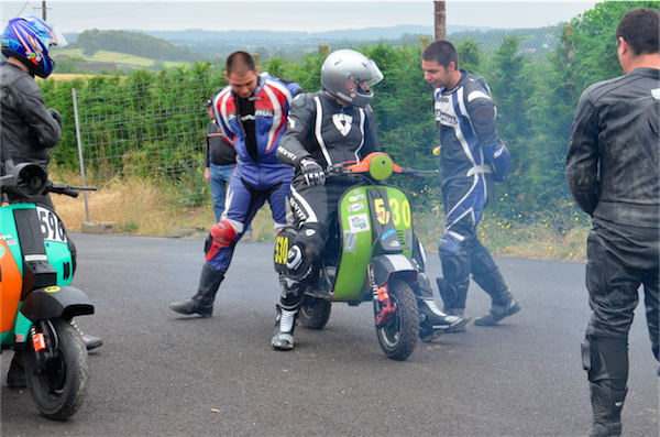 Jérôme roule habituellement en Buell, Scarabéo et participe à deux séries C2L et C2L, sur deux scooters différents, le 309 et le 536. Jean-Marc court sur sa Dwarf Special en série C4. Michaël et William, deux frères, ont découvert Scootentole l’année dernière, à Marcillat, et ont décidés de courir cette année. Wiliam en C1 et Michaël en C3.