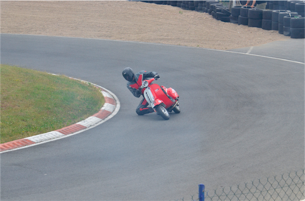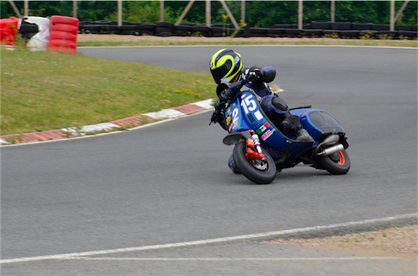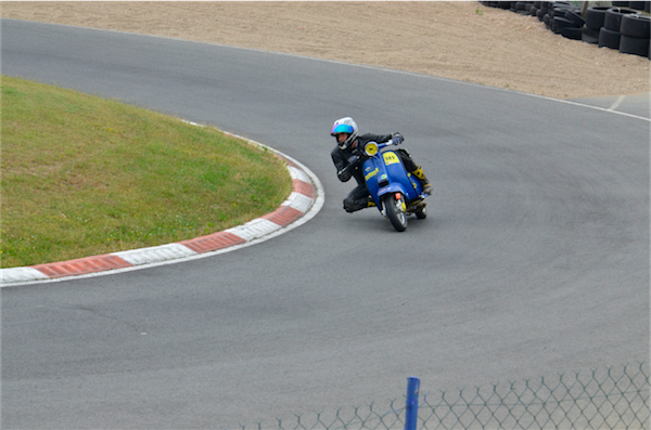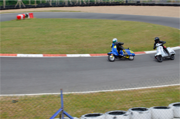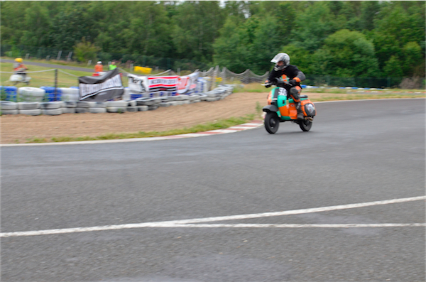 Mais si la course est intense et acharnée, l’ambiance est bon enfant. Il n’y a aucune agressivité que ce soit sur piste ou dans les paddocks, au contraire. Tout le monde se connait, plaisante, s’aide. Le petit village des participants juste à côté de la piste entretient ce bon esprit. Concurrents sur la piste et total respect font bon ménage et Scootentole nous le démontre. Ici, pas de grosse tête.