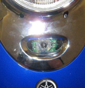 Une caméra Usb à la place du klaxon, dont il aura fallu modifier l’attache de fixation pour obtenir plus de profondeur pour la caméra.