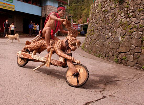 Ces scooters sont faits en bois et permettent ainsi aux conducteurs-créateurs de la colline Ifugao, de faire preuve d’imagination dans leur design. Figures d’animaux à têtes humaines ou humains à formes d’animaux, les scooters sont proches des oeuvres d’art.