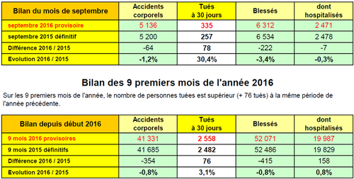Sécurité Routière : bilan septembre 2016, +30.4%
