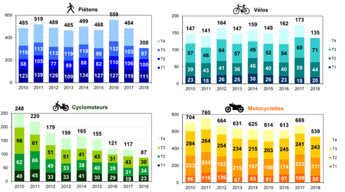- le nombre de personnes hospitalisées plus de 24 heures est aussi en baisse, avec 98 blessés hospitalisés plus de 24 heures en septembre 2018.