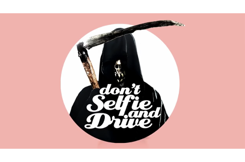 Le message : « If you don’t want to ride with the Grim Reaper, don’t selfie and drive« . (« Si tu ne veux pas conduire avec la Mort, ne te prend pas en selfie en conduisant«