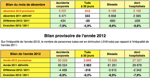 - Sécurité routière : bilan décembre 2012