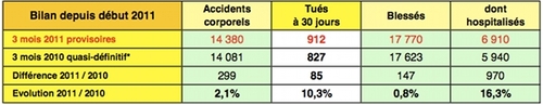 Sécurité routière : bilan mars 2011