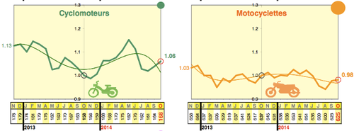 Quant à l’évolution de la mortalité des motocyclistes, elle est relativement stable malgré quelques variations saisonnières ponctuelles (-2 %). Celle des occupants des véhicules légers est également assez stable (- 1 %) malgré l’affirmation d’une hausse notable (+ 3,7%) depuis huit mois.