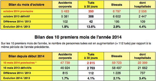 Sécurité routière : bilan octobre 2014 - +13.6% tués