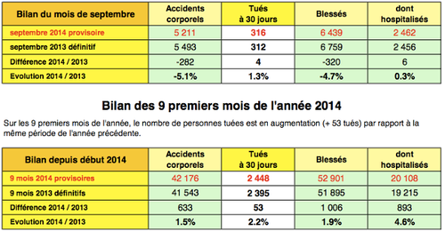 Sécurité routière : bilan septembre 2014