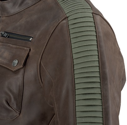 Stylé et extrêmement travaillé, le Jayzer réinvente le style motard en mélangeant l’esprit de baroudeur à celui du néo-rétro. Aisément reconnaissable grâce au montage plissé des empiècements Serica type « fashion waving » (qui retiendra l’attention des amateurs de saga du genre Space Opera...) et à la qualité du cuir Buffalo, il est la combinaison parfaite entre présent et futur.