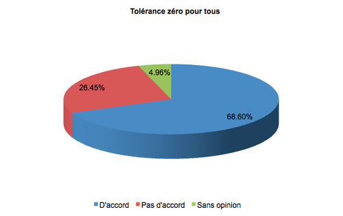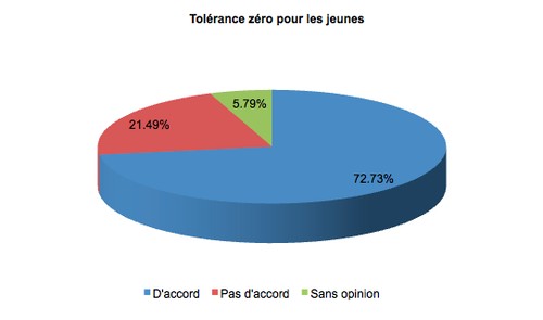 C’est à près de 73% que vous avez répondu être en faveur de la tolérance zéro pour les jeunes.