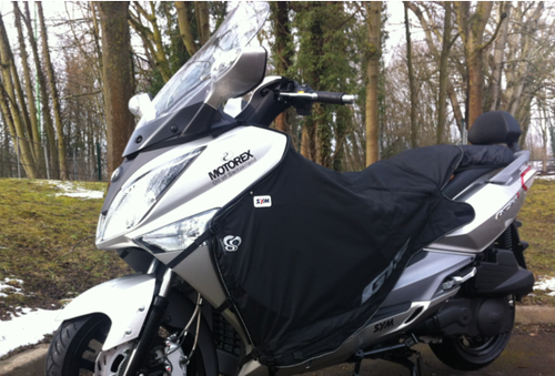 Les tabliers Sym pour les nouveaux Gts 125 et 300 EFI sont composés d’une matière textile imperméable doublée à l’intérieur d’une laine synthétique permettant de conserver la chaleur et de lutter contre le froid.