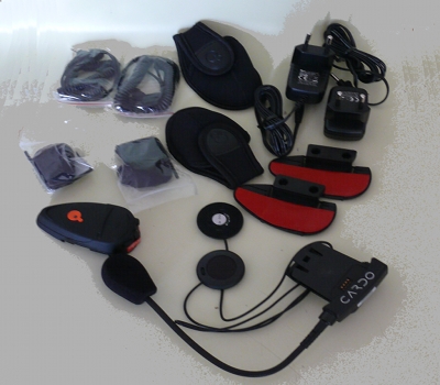 Une fois ouverte, la boite est composé de deux rangements thermo-formés qui s’emboitent l’un dans l’autre. Là aussi, c’est ingénieux et chaque chose est à sa place. Une notice complète le tout. Il y a une platine équipée d’un micro monté sur perche, pour les casques modulables ou les jets. Les intégraux ont droit à un micro fixé au bout d’un fil, du même type que les écouteurs.