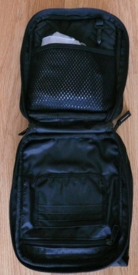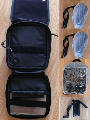 Enfin, le dernier rangement est composé de trois petits emplacements pour y glisser des cartes mémoire par exemple et un plus grand fermé là aussi par fermeture éclair. Du côté opposé, dans un filet est rangé la housse plastique de la sacoche. De quoi la protéger en cas de forte intempérie. Bagster semble avoir réellement conçu un produit pour le deux roues.