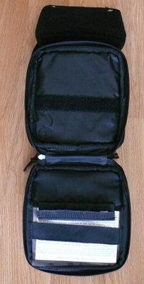 Le premier rangement comporte une bande Velcro sur le deuxième tiers qui sert à positionner plus ou moins haut le Gps dans son logement et le caler. Pour notre essai, nous avons utilisé un pocket Pc faisant office de Gps. Aucun souci pour le positionner. Il avait même tendance à glisser et ce, malgré, le large élastique qui est censé maintenir le Gps en place. Mais les Gps style Navigon ou Tomtom sont beaucoup plus épais que le nôtre. Dans le coin inférieur gauche, une ouverture est prévue pour laisser passer un fil d’alimentation électrique. Il ne s’agit pas d’un simple trou mais bel et bien une ouverture en croisillon avec couture sur tout le pourtour du croisillon. Bagster a peaufiné sa sacoche jusque dans les moindres détails. Du coup, le produit fait bien fini.