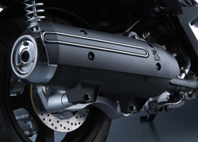 La version française dispose d’une sortie d’échappement dédoublée, comme le Gp 800, ce qui est vraiment discutable. Le pot droit de la version made in Taiwan est pourtant très beau.