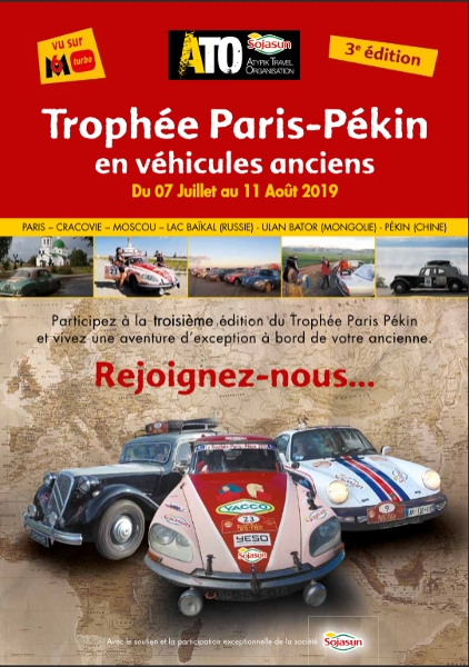 Organisé du 7 juillet au 12 août 2019, le Trophée Paris-Pékin s’adresse à tous les amoureux des grands raids automobiles. Il propose à une trentaine d’équipages de sillonner les routes mythiques d’Europe de l’Est, d’Asie Centrale, de Mongolie et de Chine, soit un tracé de près de 12.000 km.