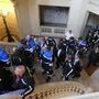L’arrivée à l’Hôtel de Ville est toujours un moment unique. Escortés par la brigade motocycliste en tenue d’apparat et tous gyrophares allumés, le trajet ne dure que quelques minutes sous les yeux des sénonais, surpris de voir un tel cortège.