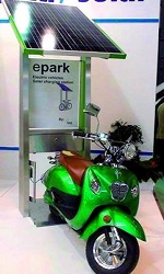 Parallèlement aux véhicules, EMS commercialise un système de recharge photovoltaïque autonome, ePark. Cet accessoire pourrait être vendu dans tous les pays européens et sa promotion est l’un des objectifs d’EMS.