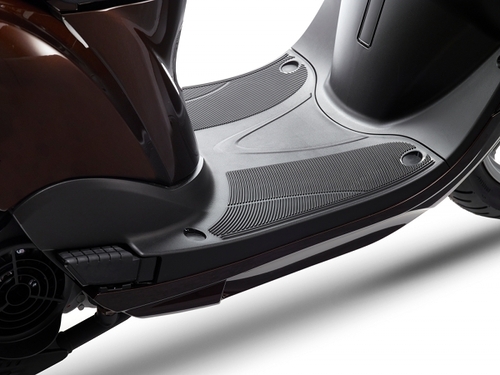 Le D’elight est équipé d’une petite boîte à gants ouverte, d’un crochet porte-paquet, de repose- pieds passager escamotables et d’une barre de maintien à l’arrière coordonnée avec le carénage. Le rangement sous la selle peut recevoir un casque de type demi-jet. Le carénage joliment courbé du D’elight offre à l’utilisateur une excellente protection contre le vent, ainsi qu’une position de conduite agréable.