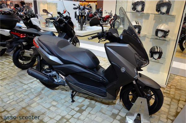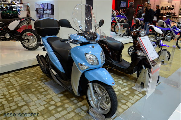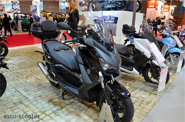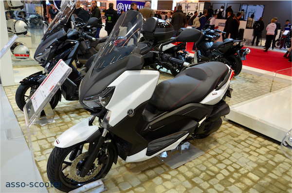 Le nouveau X-Max 125cc est présent sur le stand Yamaha du Salon Moto, Scooter et Quad 2013. Dorénavant, il reprend les lignes du grand frère X-Max 400cc. Les liges sont plus tendues et masculines. Le pli du carénage avant est plus pentu et donne l’impression que le X-Max est taillé pour fendre l’air.