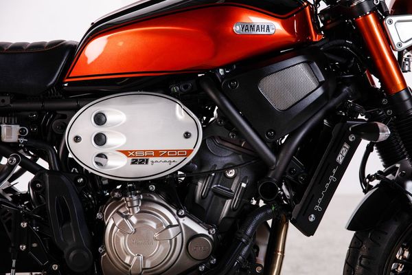 Éléments de direction de MT-07, selle de XJR1300 ou encore soufflets de fourche de XSR700 composent cette Yard Built très innovante, dont l’esthétique emprunte à la fois au scrambler et à la moto routière. Garage221 a réussi à transformer la XSR700 de façon à ce qu’elle se rapproche « physiquement » d’une RD350 ; visuellement, on reste proche d’une ligne rétro de Yamaha des années 70 mais techniquement, on est bien au XXIe siècle.